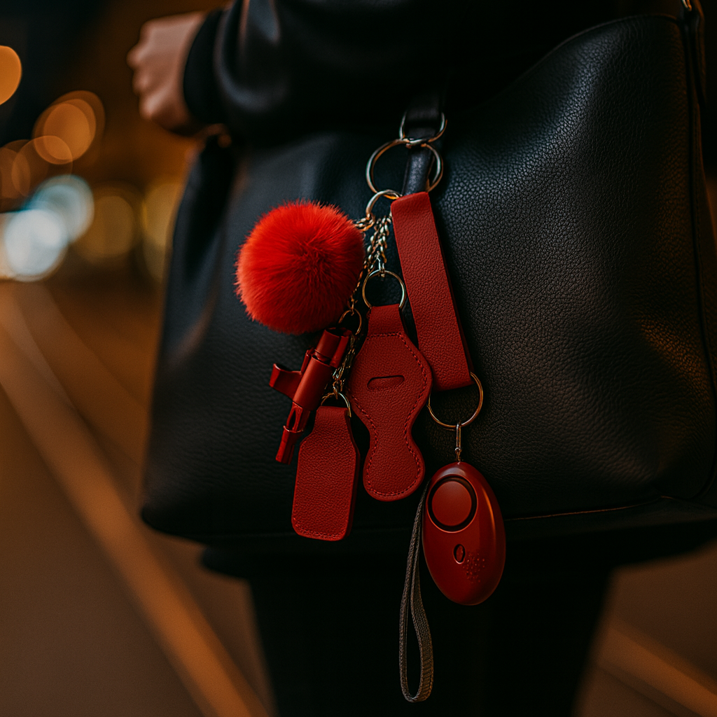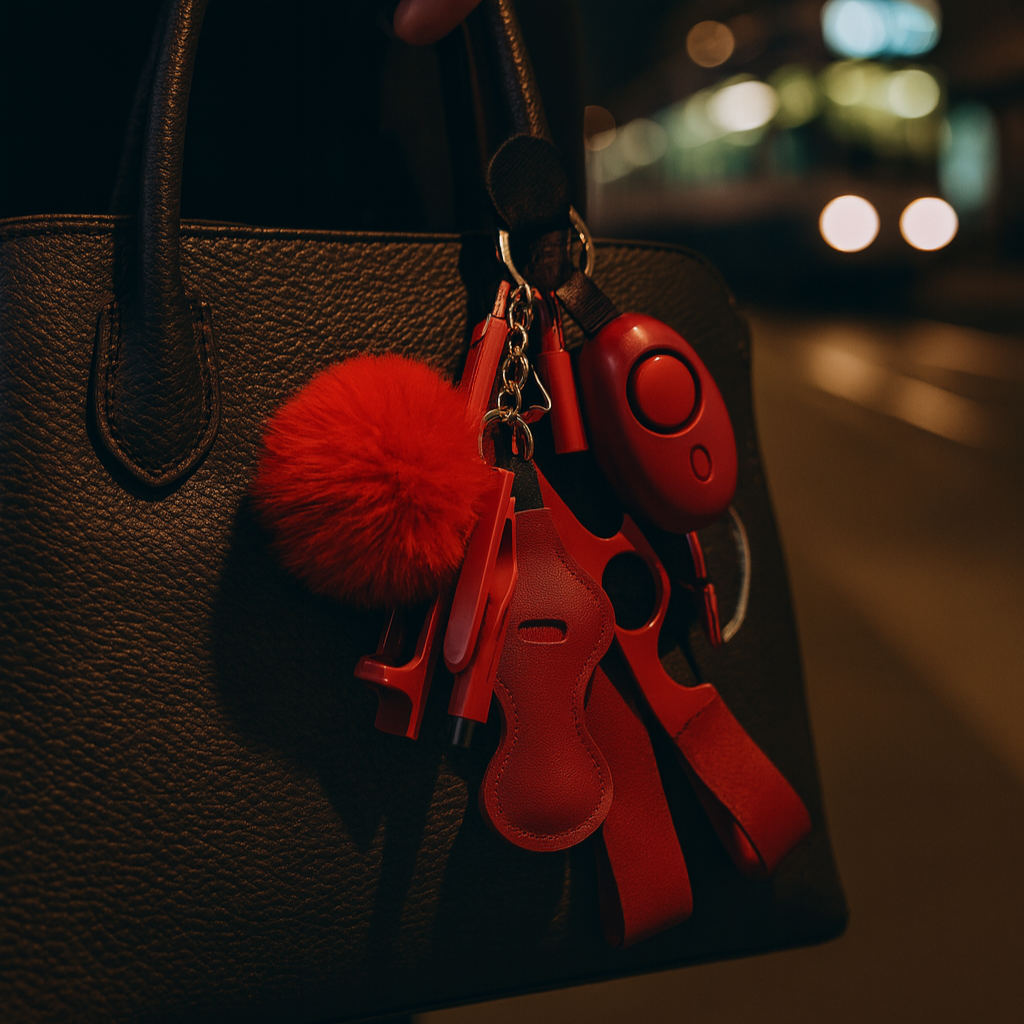 Dieser Vistina KeyGuard vereint mehrere praktische Schutzaccessoires in einem einzigen, kompakten Schlüsselanhänger. Perfekt für den Heimweg, den Abend mit Freundinnen, das Auto oder auf Reisen.